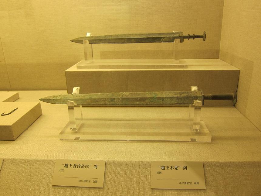 春秋战国时期,由于战争频繁,各国都十分重视武器的制造,越国和吴国为了争霸,出于战争的需要,当时的青铜兵器铸造业非常先进,特别是青铜剑得到了空前发展,工艺先进,装饰精良,在灭吴称霸过程中起到了决定性作用。历史上有所谓“吴戈越剑”之说,绍兴便是青铜剑的故乡。