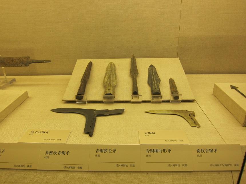 越国的兵器最为精良的除了青铜剑,还有矛、戈、戟等青铜兵器。