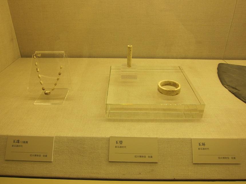 鱼鳍形足陶鼎,它的造型非常的特别,这种红陶我们称之为夹砂红陶。人们在那个时候已经懂得了在用作炊具的陶器中要加入沙粒以防烧裂。它有三个扁薄的鼎足,因形如鱼鳍而得名,中原地区出土的鼎,它的鼎足大多形似大型动物的蹄足,而它却是选用了鱼鳍的形状,具有明显的江南水乡特色,是绍兴先民对鱼类情有独钟的体现。